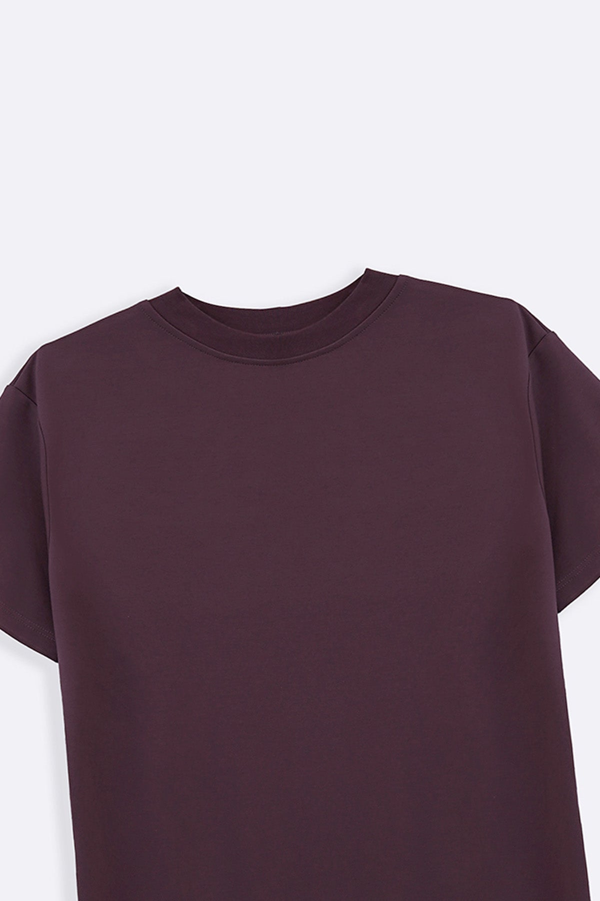 Design details: Heavy viscose classic crew neck tee dress with side slit